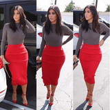 Floral Long-Sleeve High-Neck Skinny Two-piece Set