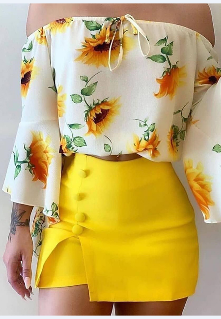 Irregular Sexy Print Slit Two Piece Dress