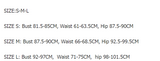 | Hip Size | 84cm/33" | 88cm/35" | 94cm/37" | 99cm/38.9" |