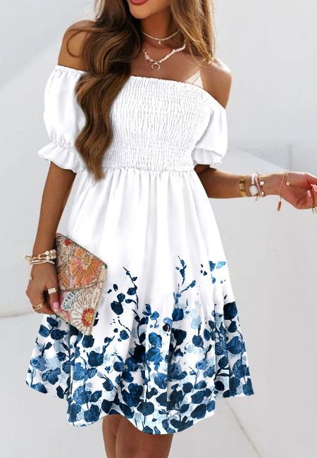 • One-Shoulder Short Sleeve Printed Casual Dress