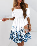 One-Shoulder Short Sleeve Printed Casual Dress