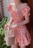 Temperament Sweet Floral Peach Pink Dress