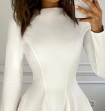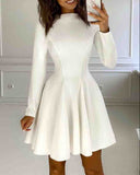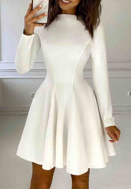 • Temperament White Solid Color Women's Long Sleeve Dress