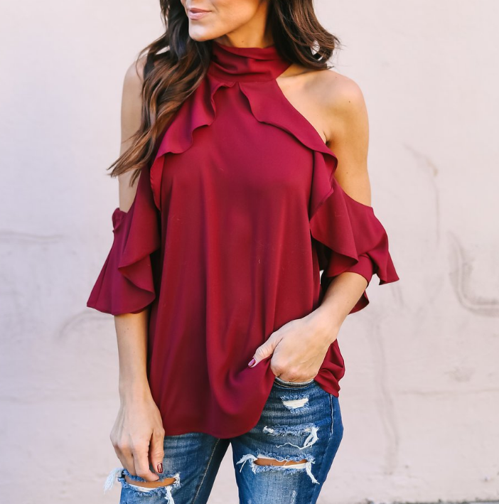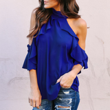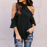 • Women'S Ruffled Off-The-Shoulder Hanging Neck T-Shirt